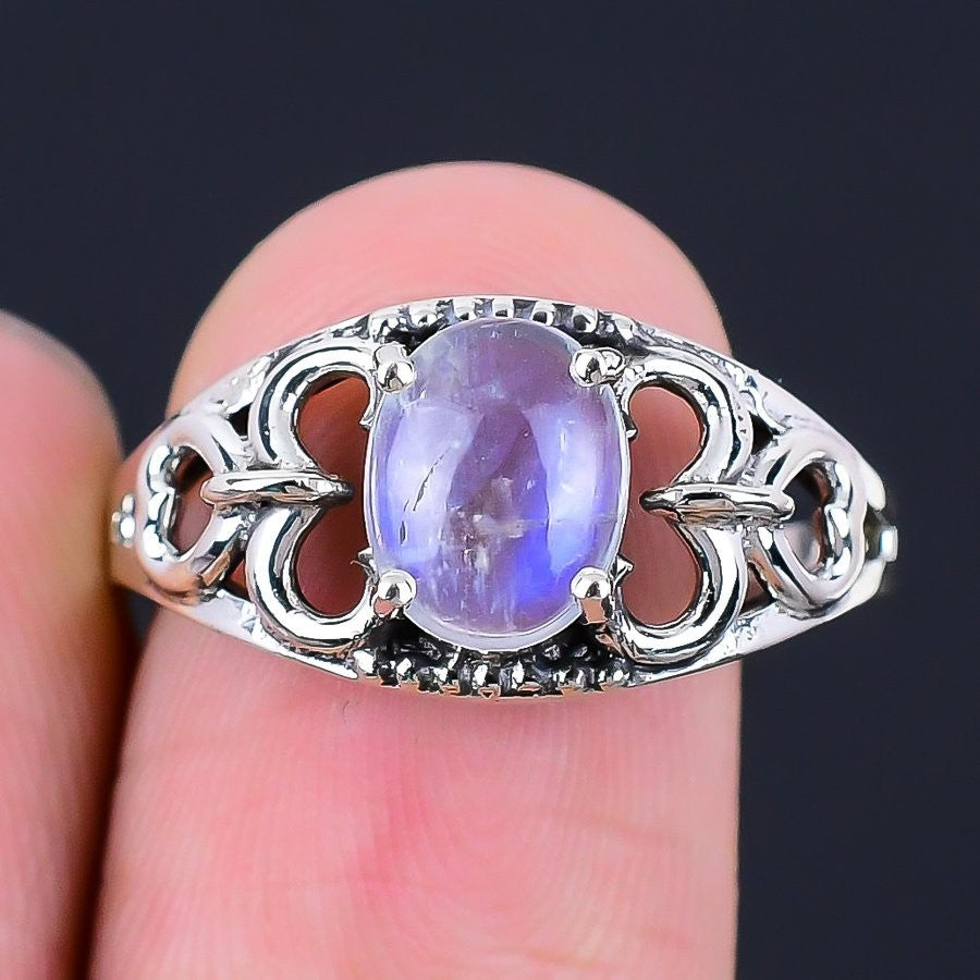 Rainbow Moonstone Stone Solid Silver Handcrafted Cluster Birthday Ring Size 6