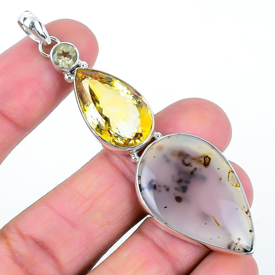 Daughters Day Deal Natural Montana Agate Sterling Silver Sister Pendant Jewelry