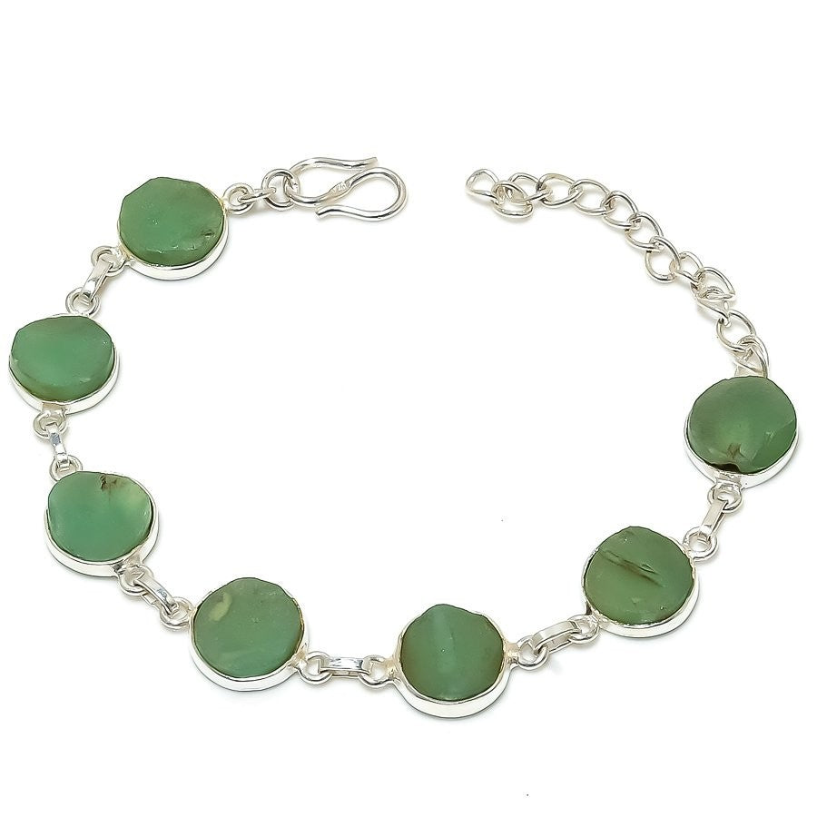 Natural Prehnite Solid Silver Chain Best Daughters Gift Engagement Wife Bracelet