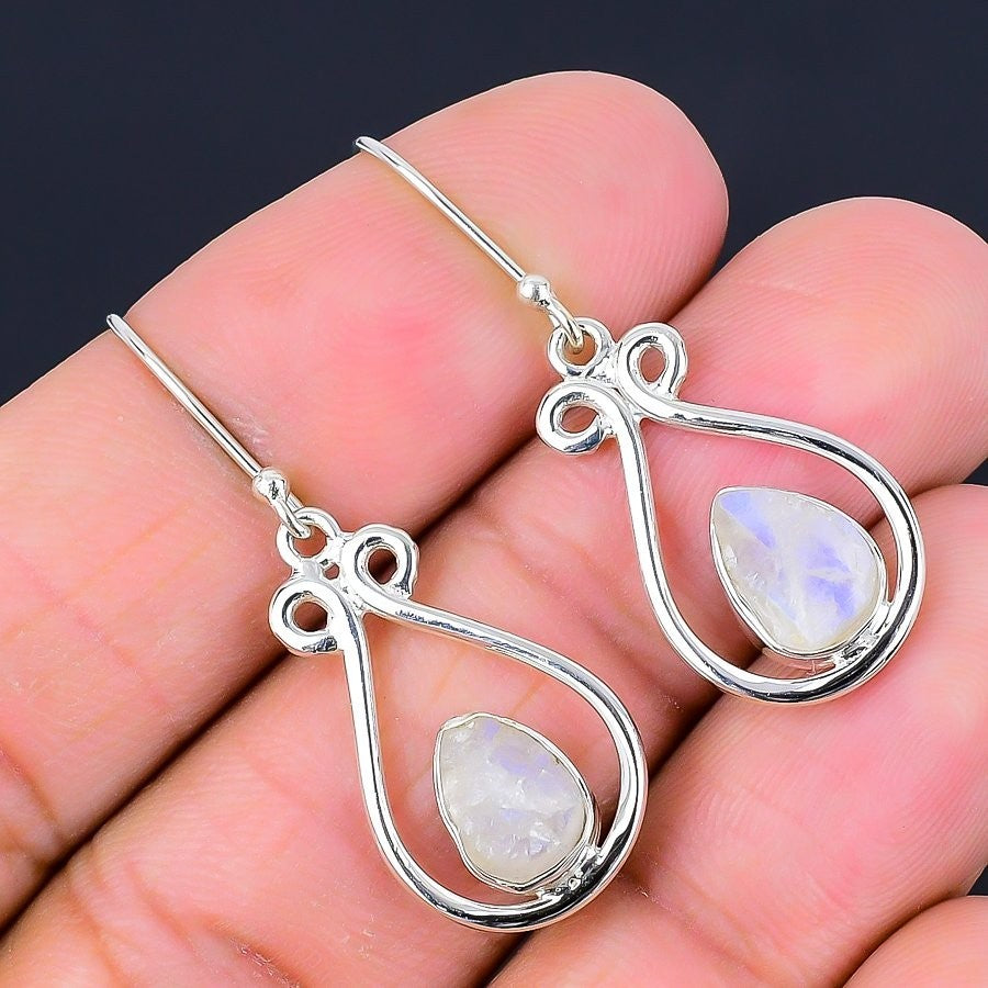 Rainbow Moonstone Stone Sterling Silver Wife New Dangling Hook Earrings Jewelry