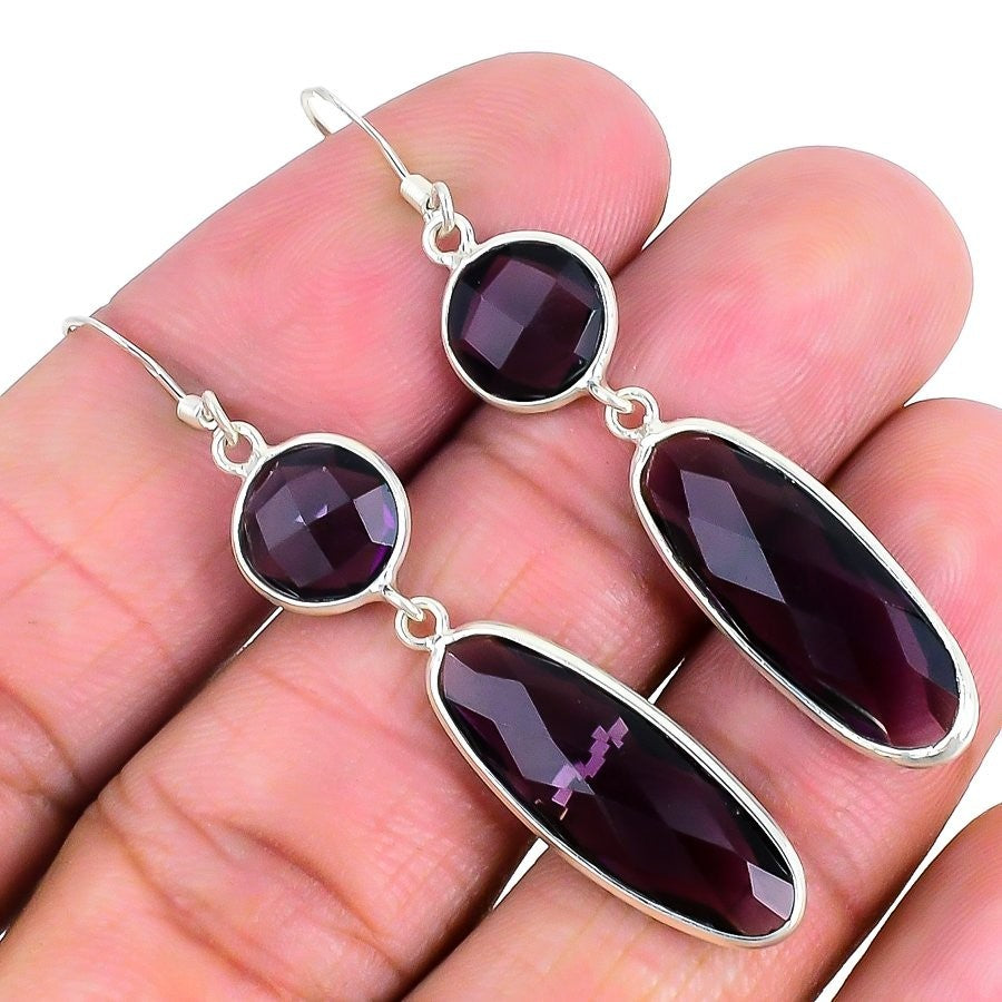 Amethyst Treated Stone Sterling Silver Engagement Wedding Dangling Hook Earrings