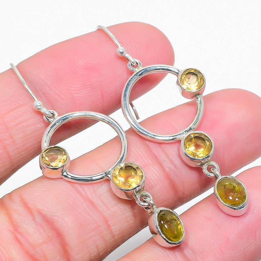 Natural Citrine 925 Silver November Birth Drop Dangle Sister Earrings Jewelry