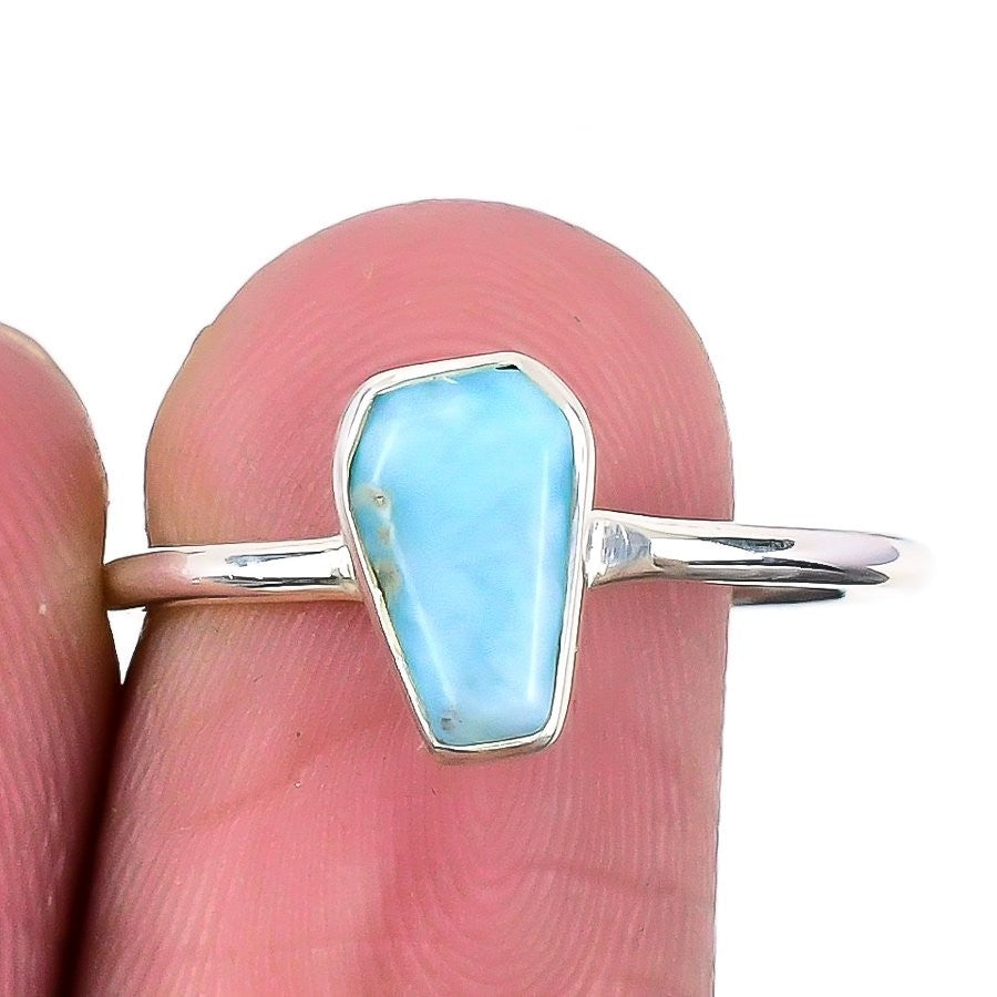 Republic Larimar Stone Solid Sterling Silver Mother Statement Boho Ring Size 10