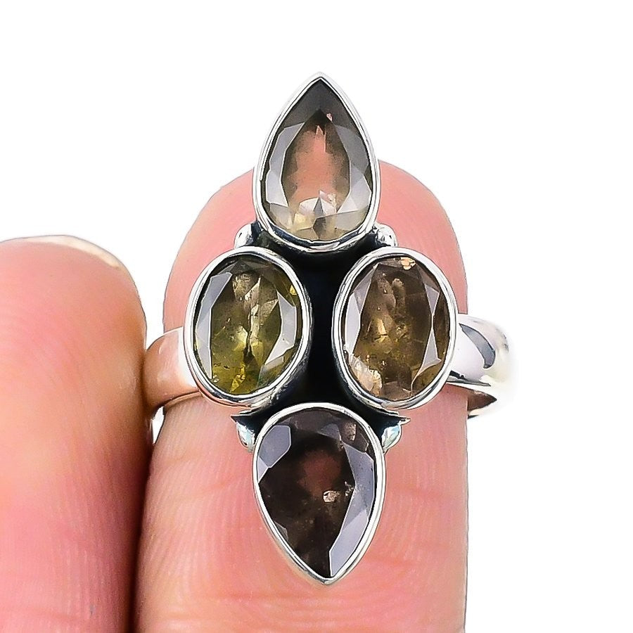 Moldavite Gemstone Daughters Day Cluster Third Eye Chakra Ring Sterling Silver