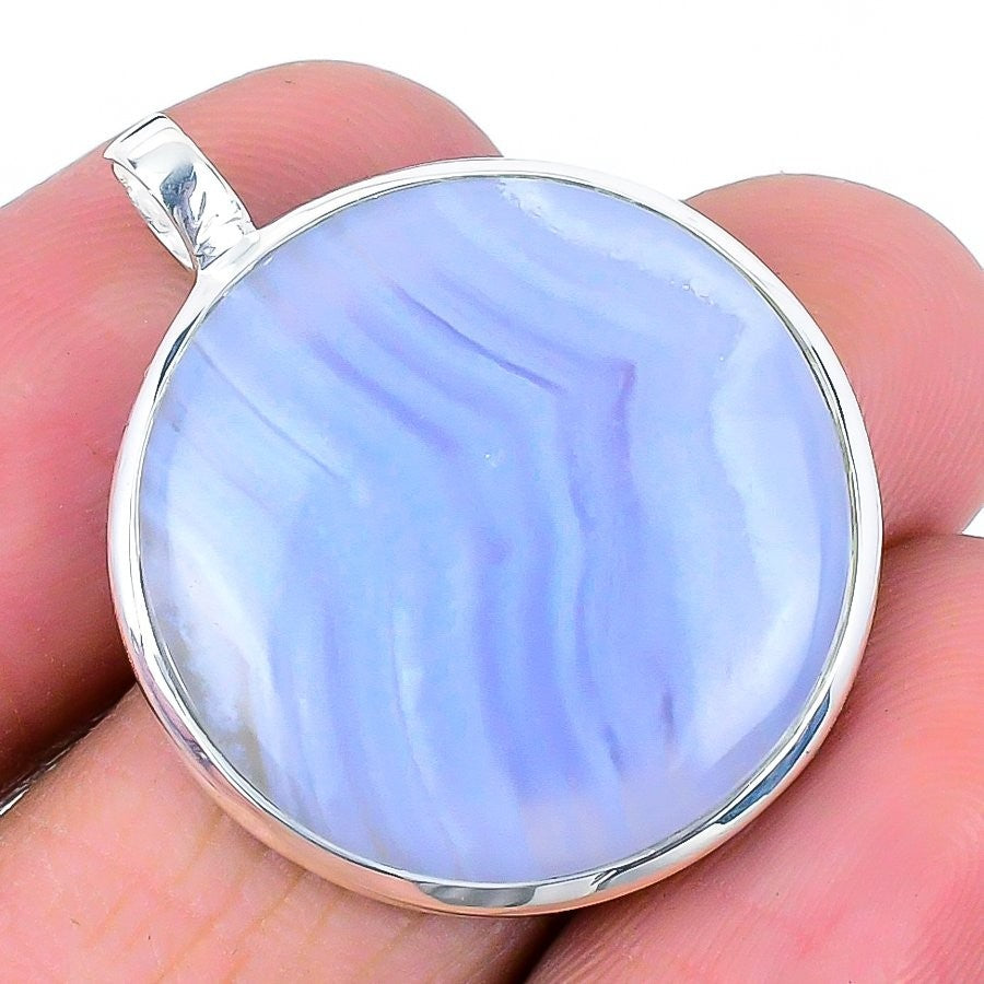 Third Eye Chakra Blue Lace Agate Stone 925 Sterling Silver Daughters Day Pendant