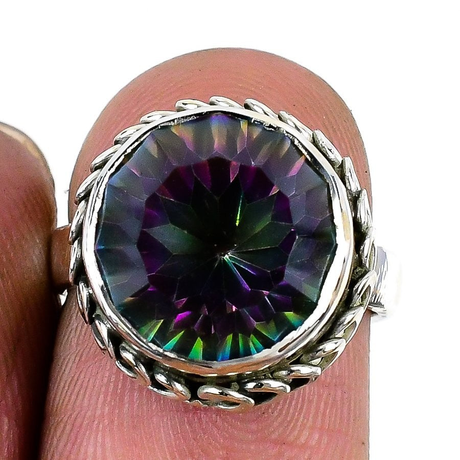 Daughters Day Sale Natural Mystic Topaz 925 Silver Statement Wedding Ring US 6