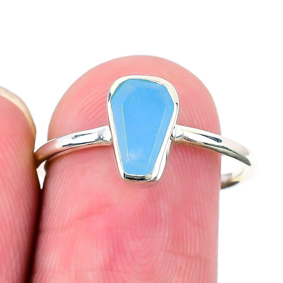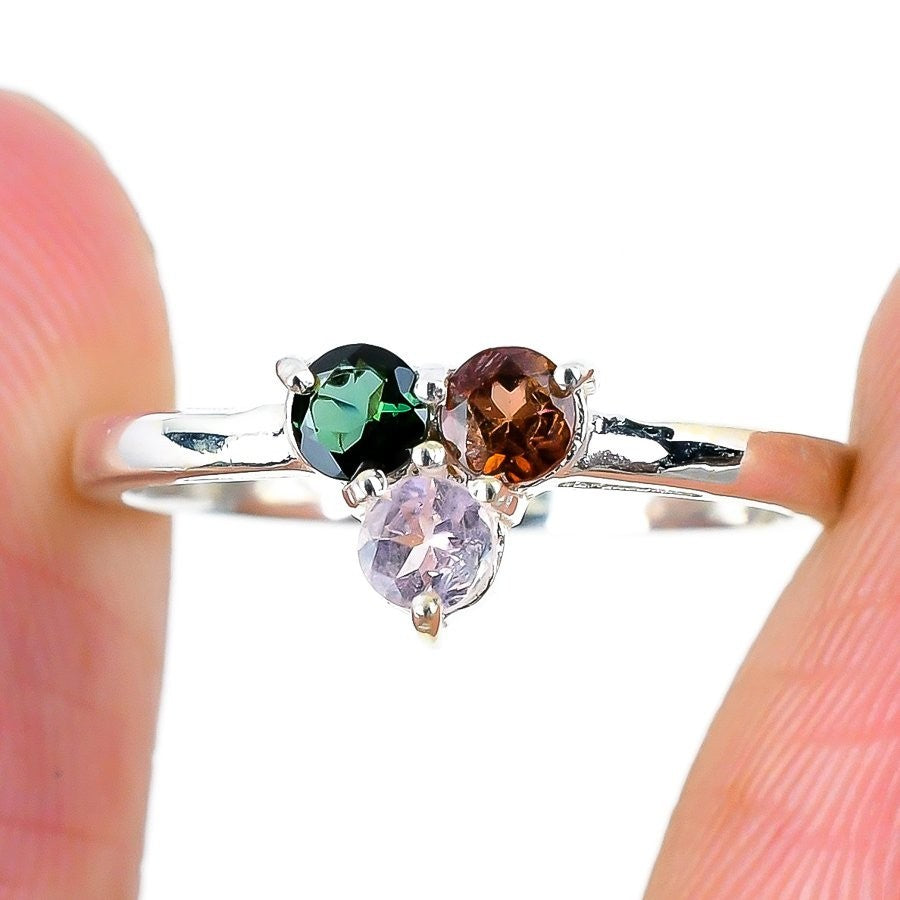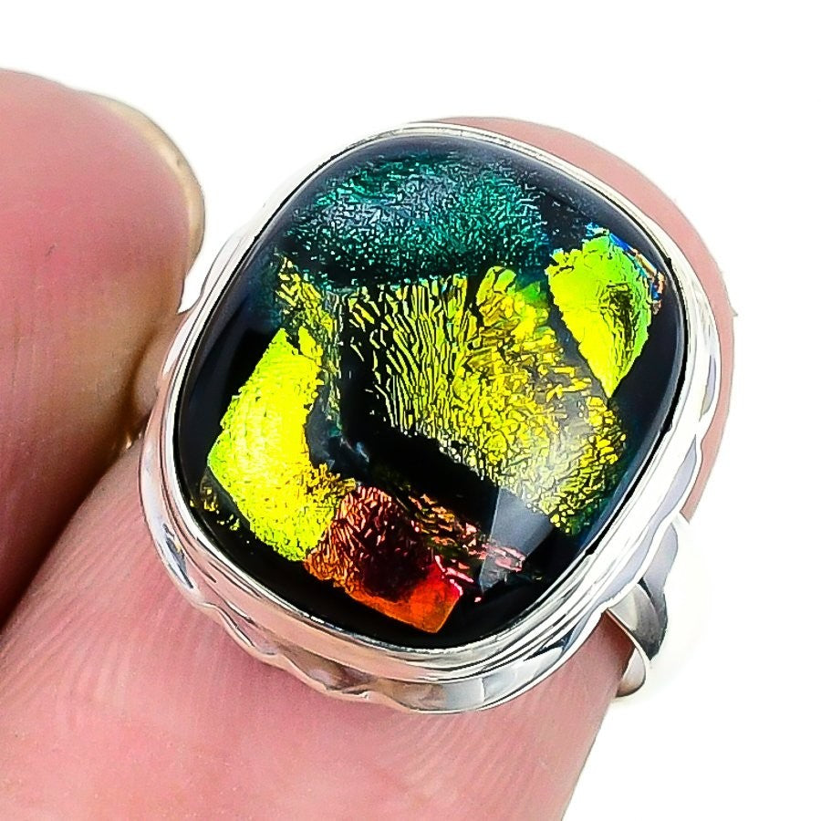 Natural Mexican Dico Glass 925Ā SolidĀ Silver Birthday Cluster Unique Ring Size 7