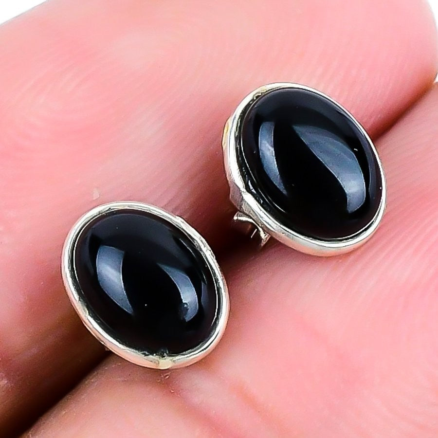 Black Onyx Gemstone Stud Post Sister Unique Earrings Jewelry 925 Sterling Silver