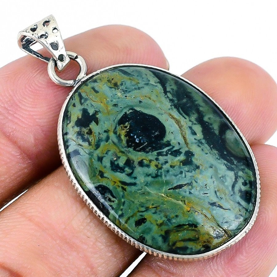 Kambaba Jasper Gemstone Solid Silver Daughter Art Deco Unique Pendant Jewelry