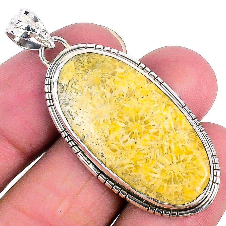 Fossil Coral Gemstone Sterling Silver Daughter Handmade Ethnic Elegant Pendant