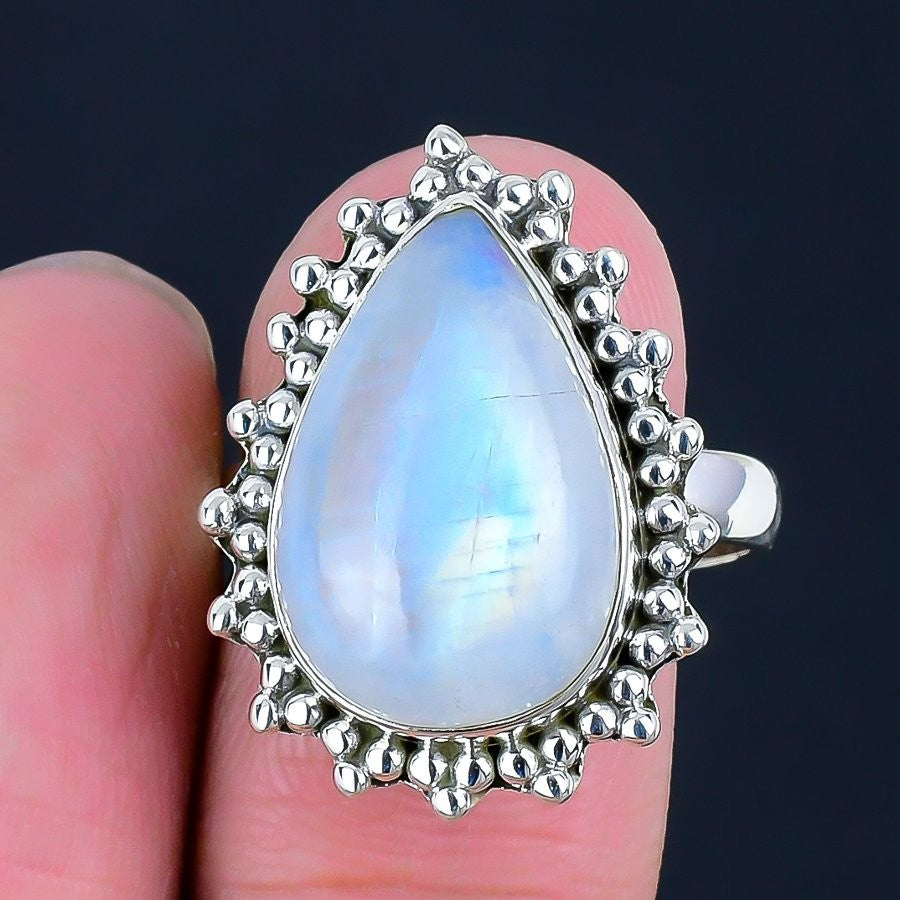 Rainbow Moonstone Gemstone 925Ā SolidĀ Silver Cluster Crown Chakra Ring Size 8.5