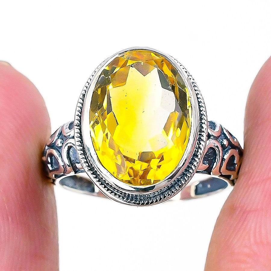 Daughters Day Sale Natural Citrine Sterling Silver Cluster Wife Boho Ring Size 7