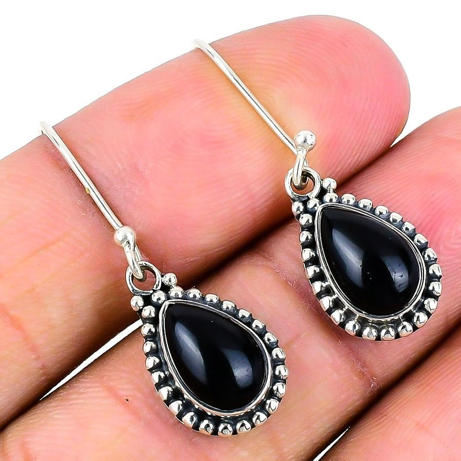 Black Onyx Gemstone 925Ā SolidĀ Silver Wife Dangling Root Chakra Earrings Jewelry