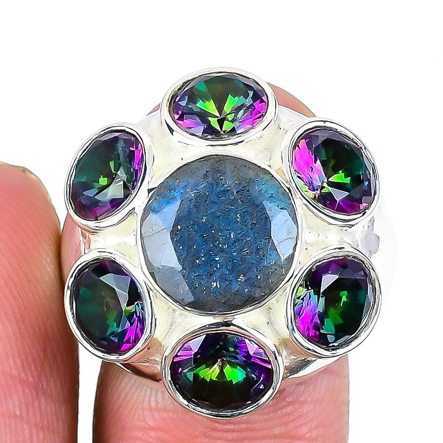 Labradorite Gemstone 925 Silver Elegant Statement Engagement Ring Jewelry US 6.5
