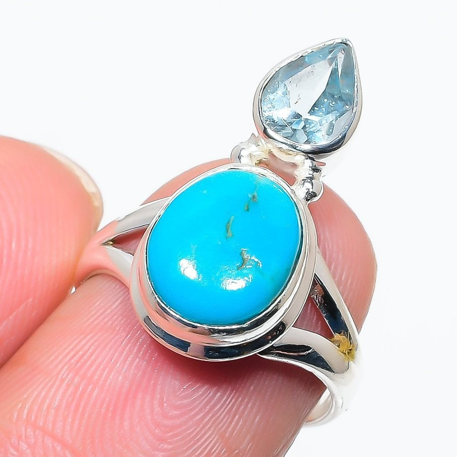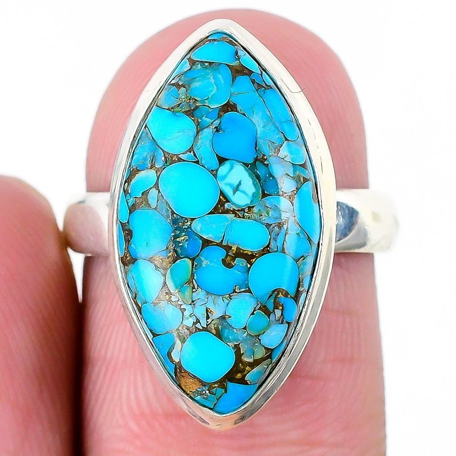 Copper Blue Turquoise Stone Cluster December Ring Size 7 Solid Sterling Silver