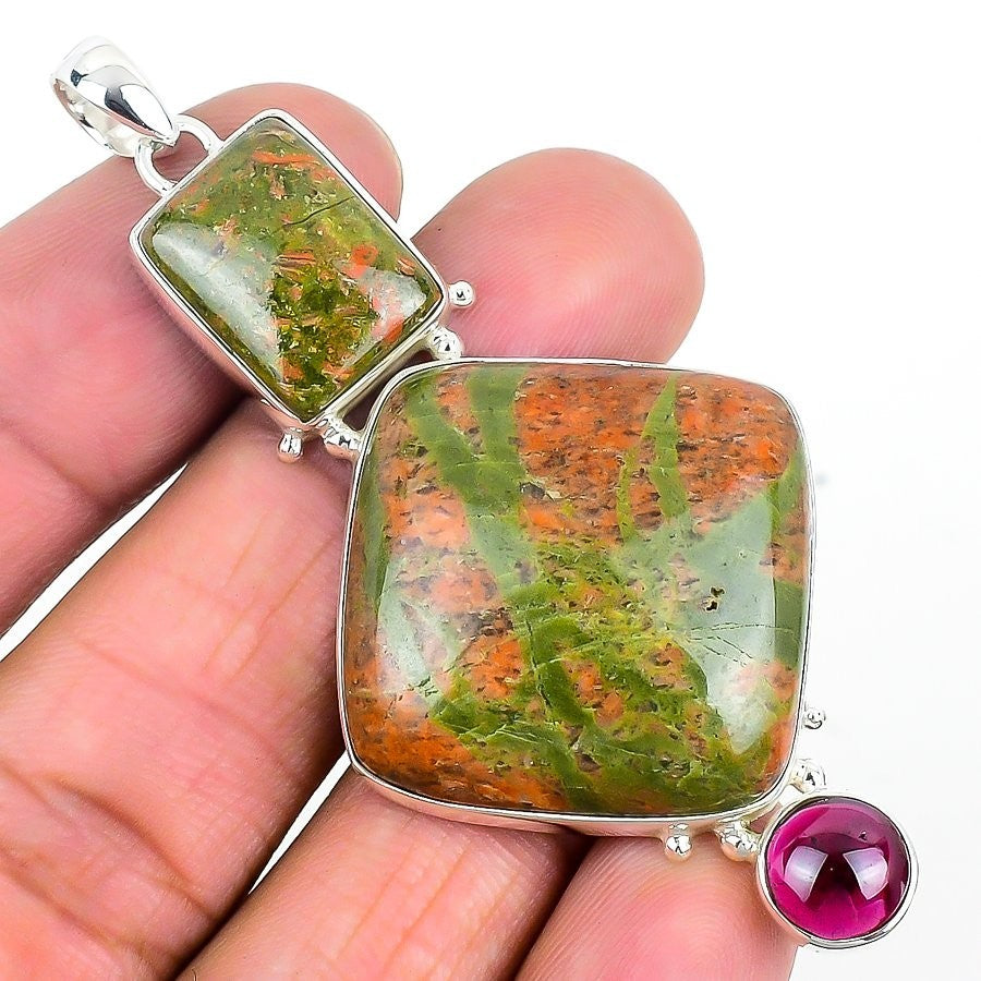 Natural Unakite 925 Silver Wedding Heart Chakra Channel Set Wife Pendant Jewelry
