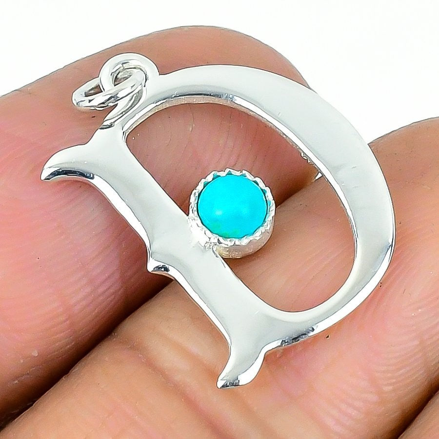 Arizona Turquoise Alphabet D Stone 925 Sterling Silver Birthday Wedding Pendant