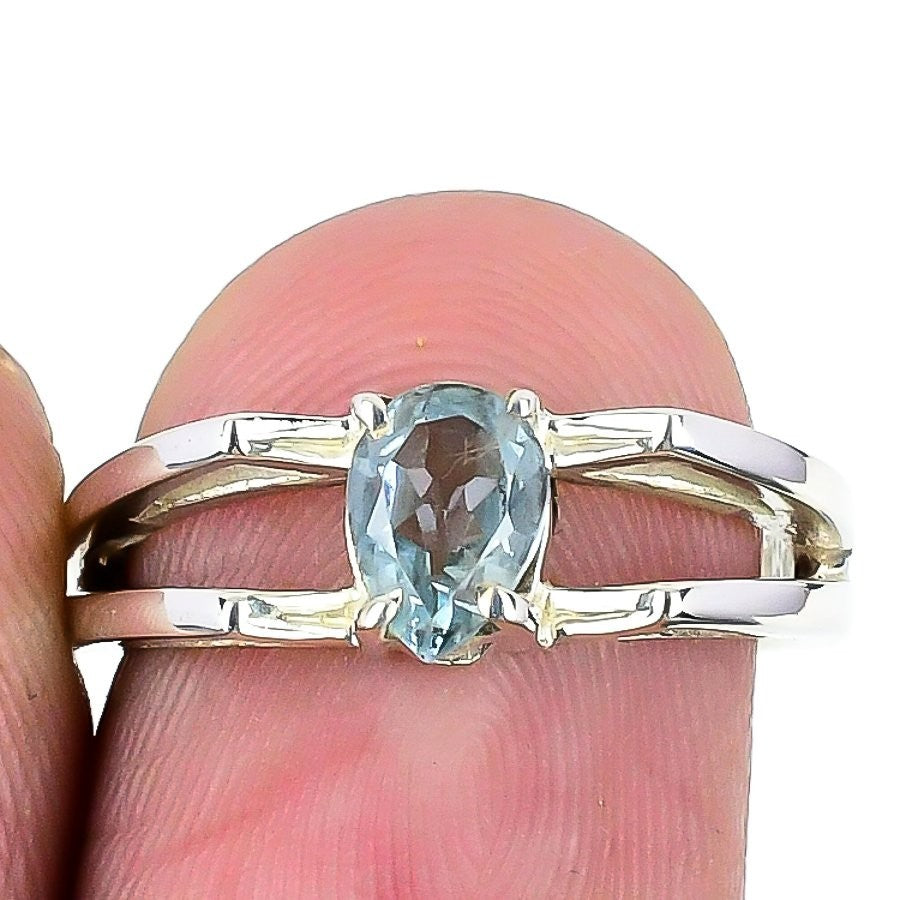 Swiss Blue Topaz Gemstone Solid Silver Birthday Statement Engagement Ring US 7