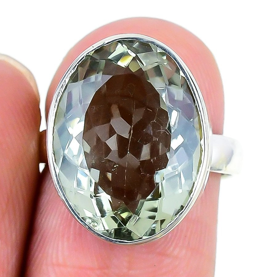 Natural Green Amethyst Solid Silver New Statement Channel Set Unique Ring Size 7