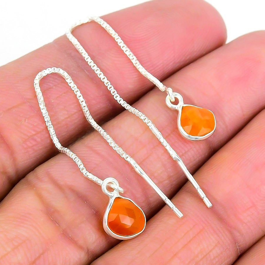 Orange Carnelian Stone Art Deco Hook Dangle Sacral Chakra Earrings Solid Silver