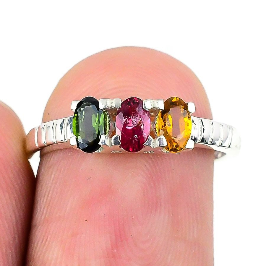 Multi Tourmaline Stone Mother Statement Wedding Ring Jewelry Solid Silver US 7