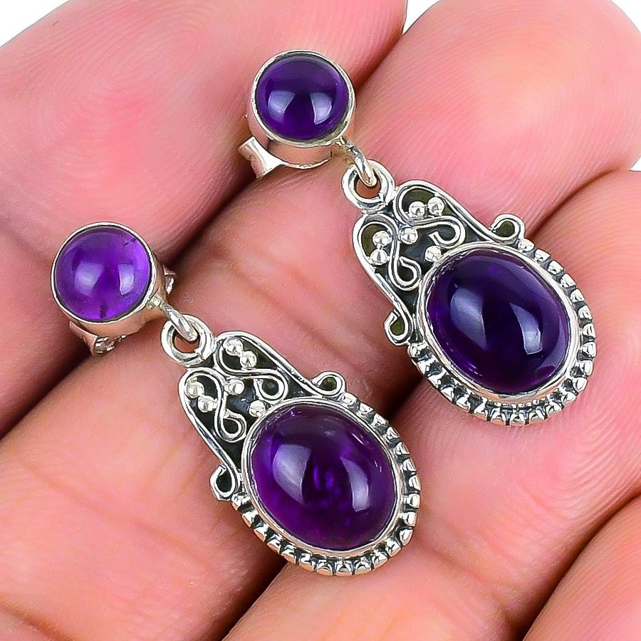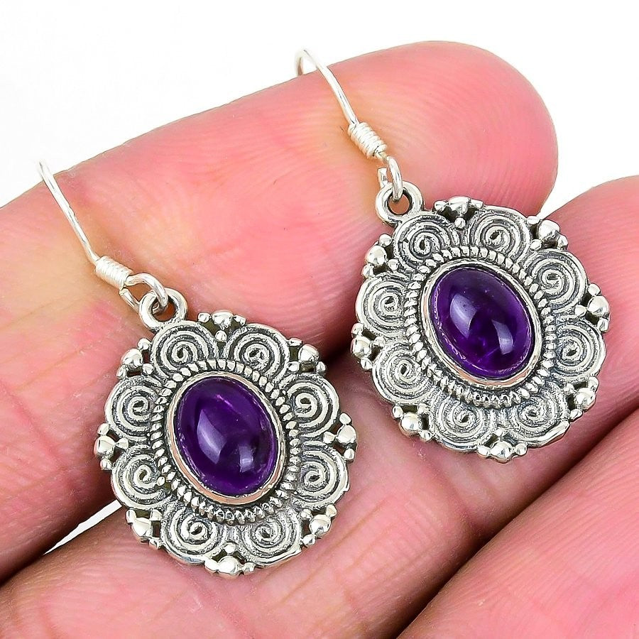 Sage Amethyst Gemstone 925Ā SolidĀ Silver Engagement Boho Dangle Earrings Jewelry