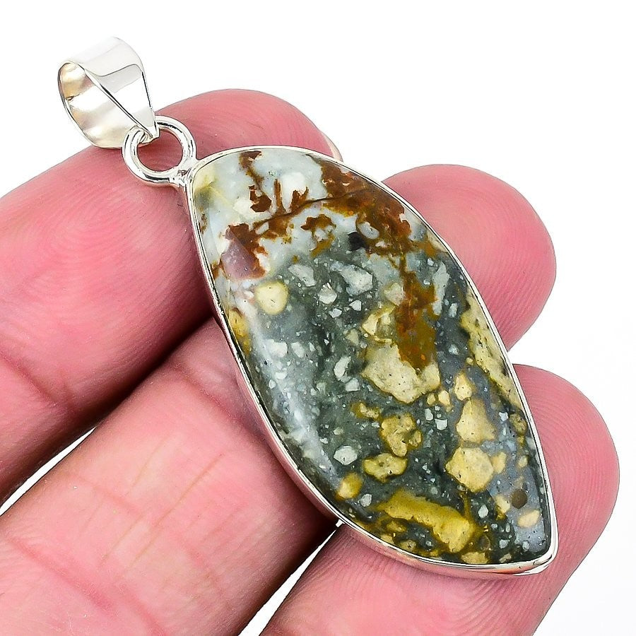 Polygram Jasper Gemstone Solid Sterling Silver Channel Set Mother Unique Pendant