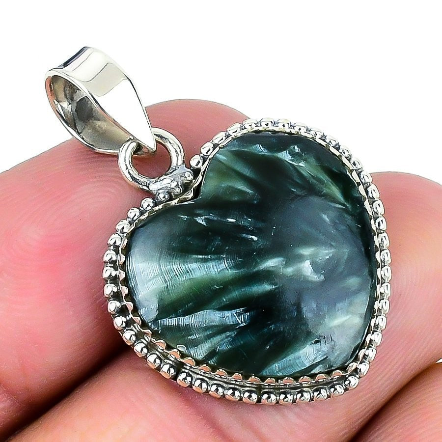Natural Seraphinite 925 Sterling Silver Mother Trendy Handmade Pendant Jewelry