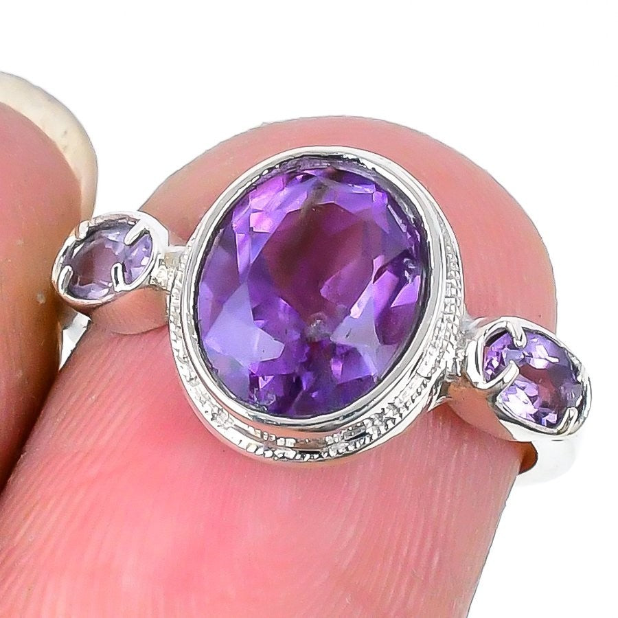 Amethyst Faceted Gemstone Solid Silver Statement Daughters Day Ring Jewelry US 4