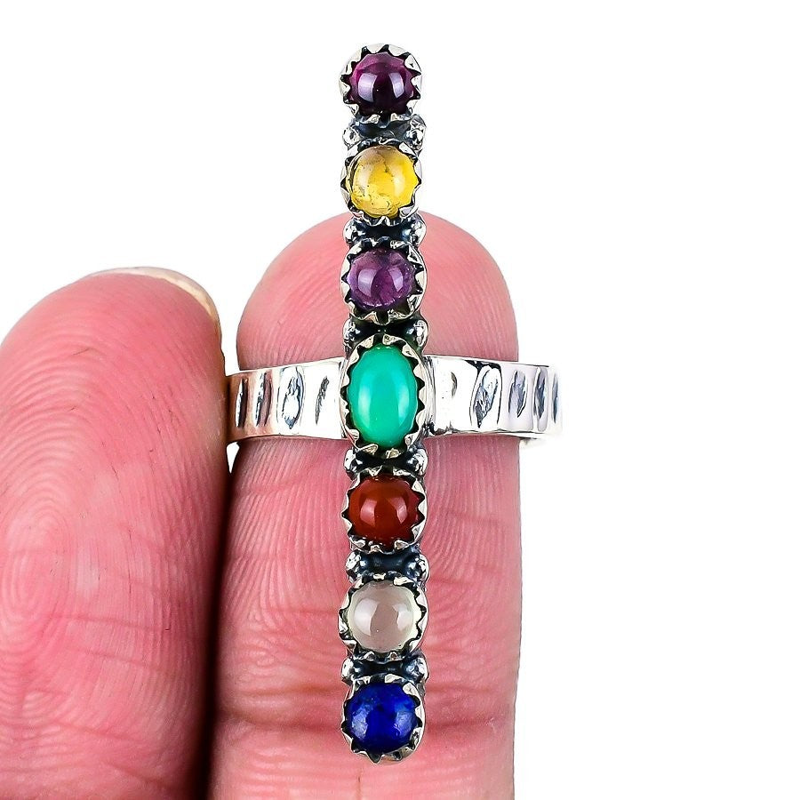 Natural Seven Chakra 925Ā SolidĀ Silver Cluster Wife Daughters Day New Ring Size 7