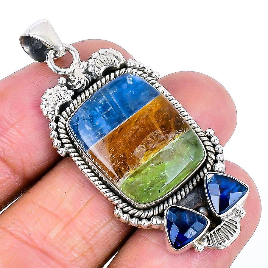 Kyanite Triplet Gemstone Artisan Birthday Daughter Gift Pendant 925Ā SolidĀ Silver