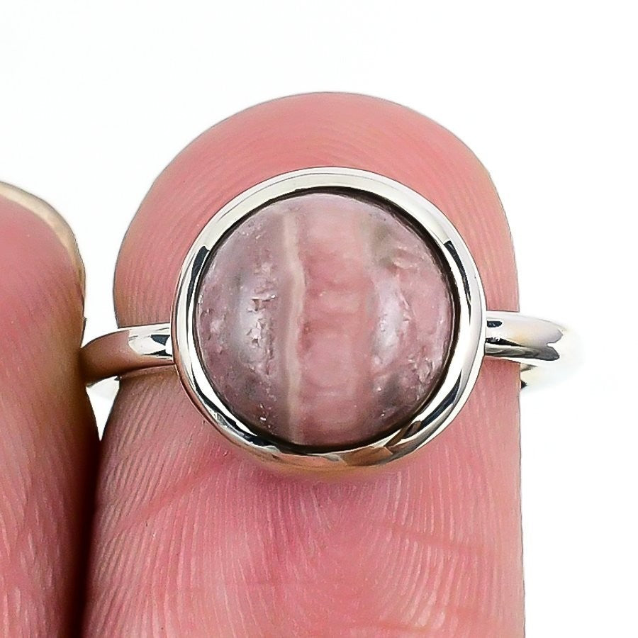 Natural Rhodochrosite Birthday Statement Heart Chakra Ring 925Ā SolidĀ Silver US 6