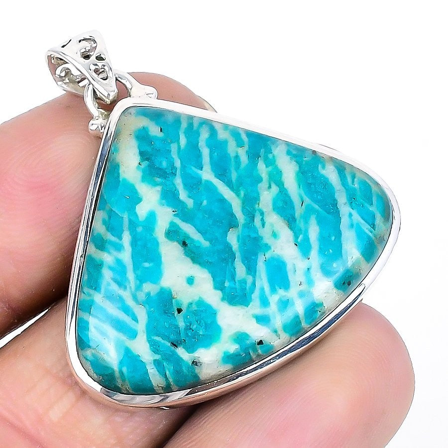 Daughters Day Deal Natural Amazonite Face Solid Sterling Silver Pendant Jewelry