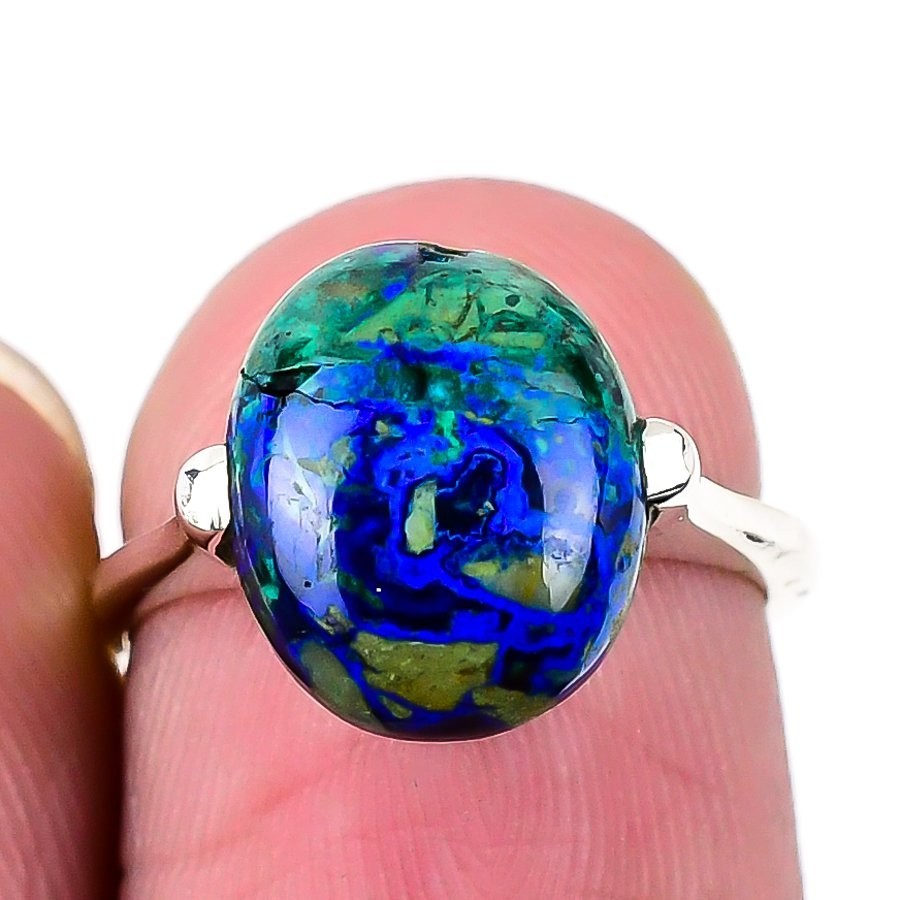 Throat Chakra Azurite Malachite Gemstone Solid Silver Statement Wife Ring US 5