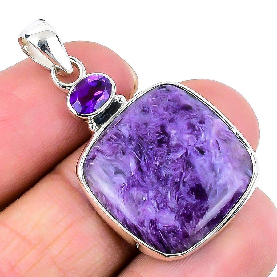 Russian Charoite Gemstone Solid Sterling Silver Daughter Gift Pendant Jewelry