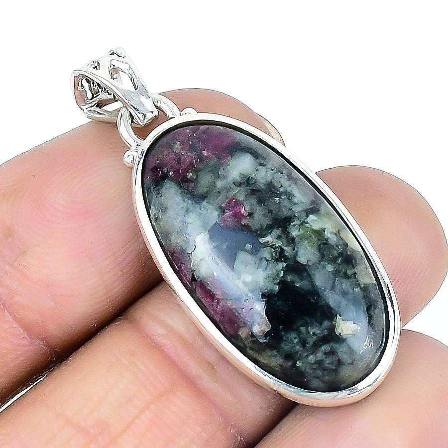 Natural Eudialyte Solid Silver Daughter Birthday Art Deco Trendy Pendant Jewelry