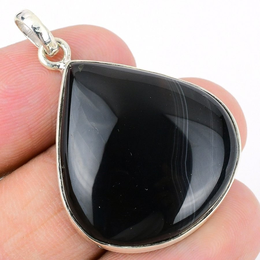 Banded Agate Gemstone 925Ā SolidĀ Silver Daughters Day Mother Engagement Pendant