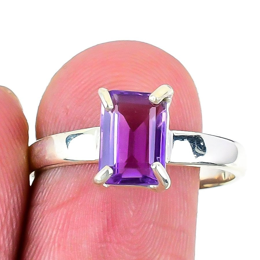 Amethyst Gemstone 925 Sterling Silver Statement February Birth Wife Ring Size 10