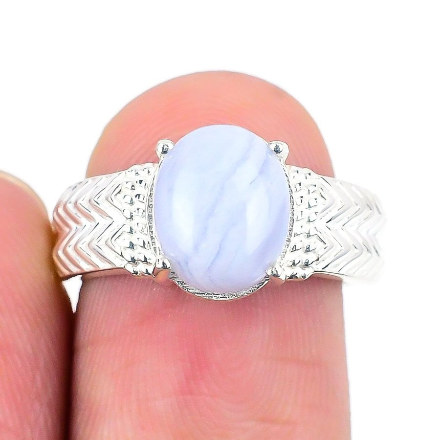 Blue Lace Agate Gemstone Sister Trendy Statement Ring Solid Sterling Silver US 7