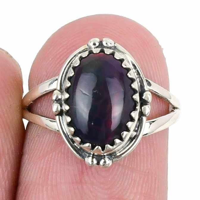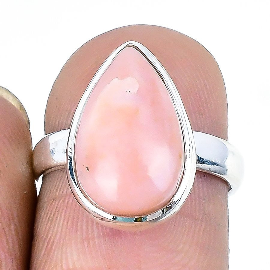 Pink Opal Gemstone Wife Anniversary Ethnic Statement Ring 925Ā SolidĀ Silver US 7