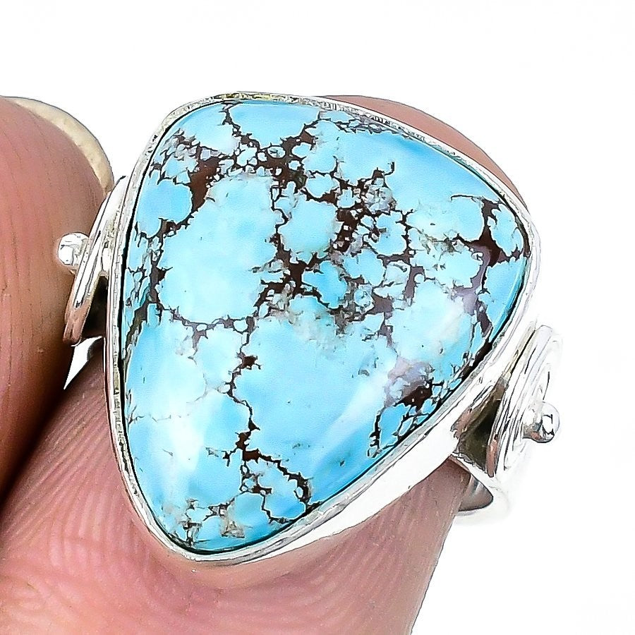 Throat Chakra Tibetan Turquoise Stone 925 Silver Statement Trendy Ring Size 7.5