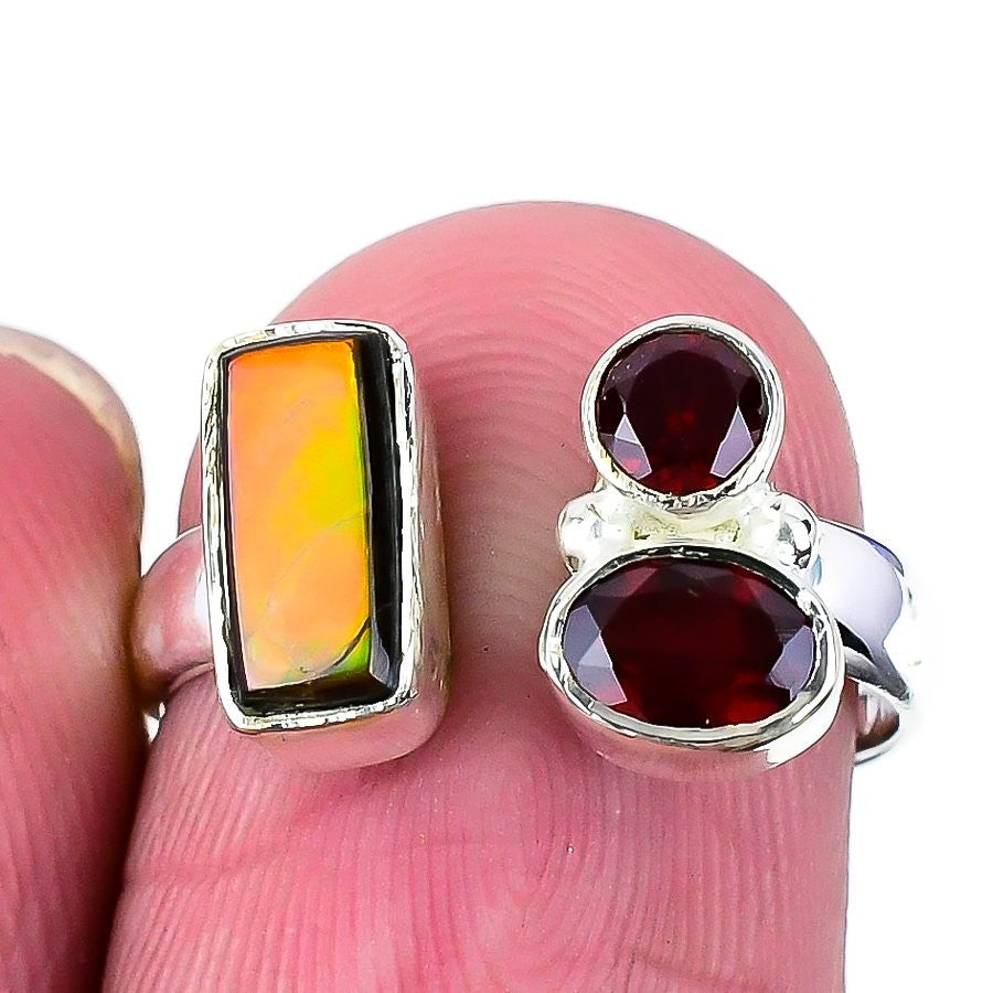 Ammolite Stone 925 Silver Cluster Handmade Artisan Mother Ring Jewelry Size 6