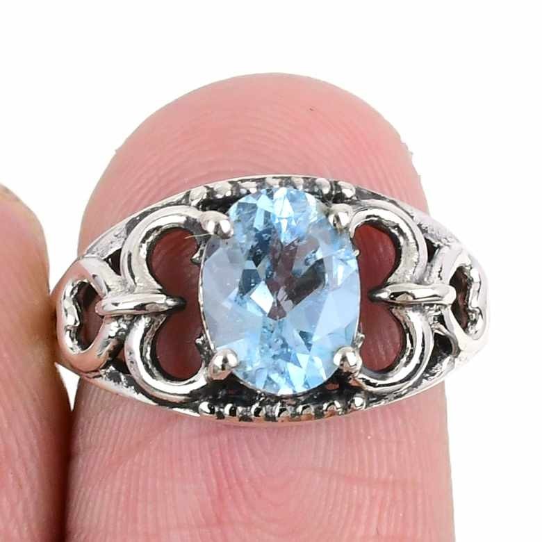 Swiss Blue topaz Stone Solid Sterling Silver Wedding Ethnic Cluster Ring Size 6