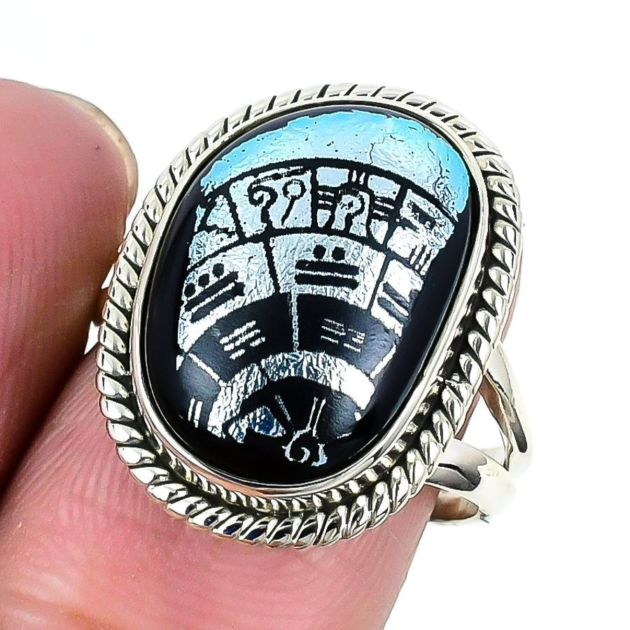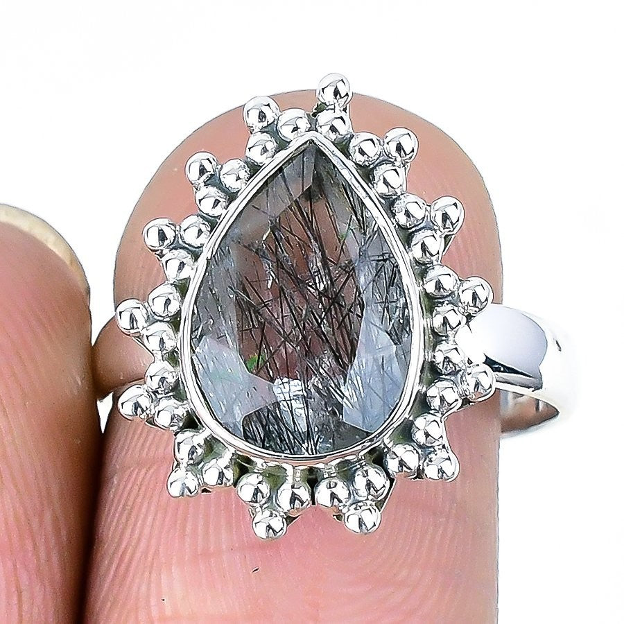 Natural Black Rutile Daughter Elegant Wedding Art Deco Statement Ring 925 Silver