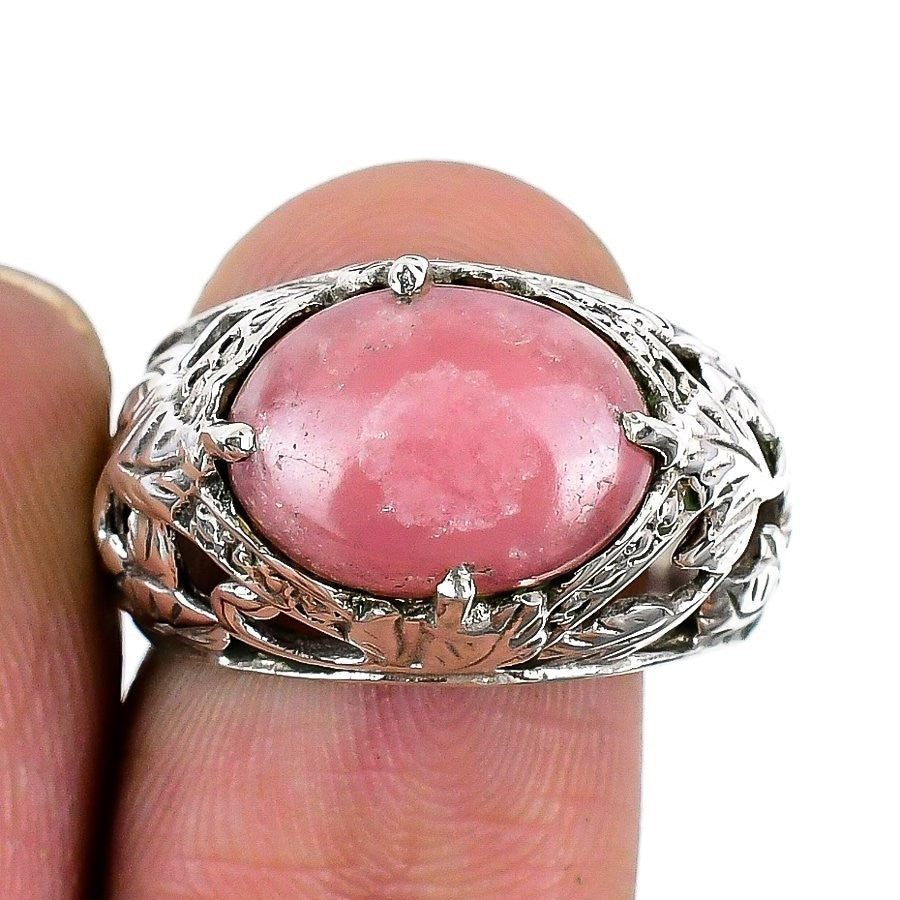 Rhodochrosite Gemstone 925Ā SolidĀ Silver Wedding Statement Ring Jewelry Size 8.5