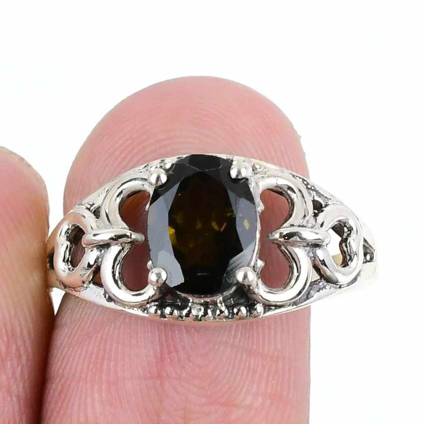 Moldavite Herkimer Diamond Gemstone Solid Silver New Cluster Ring Jewelry Size 7