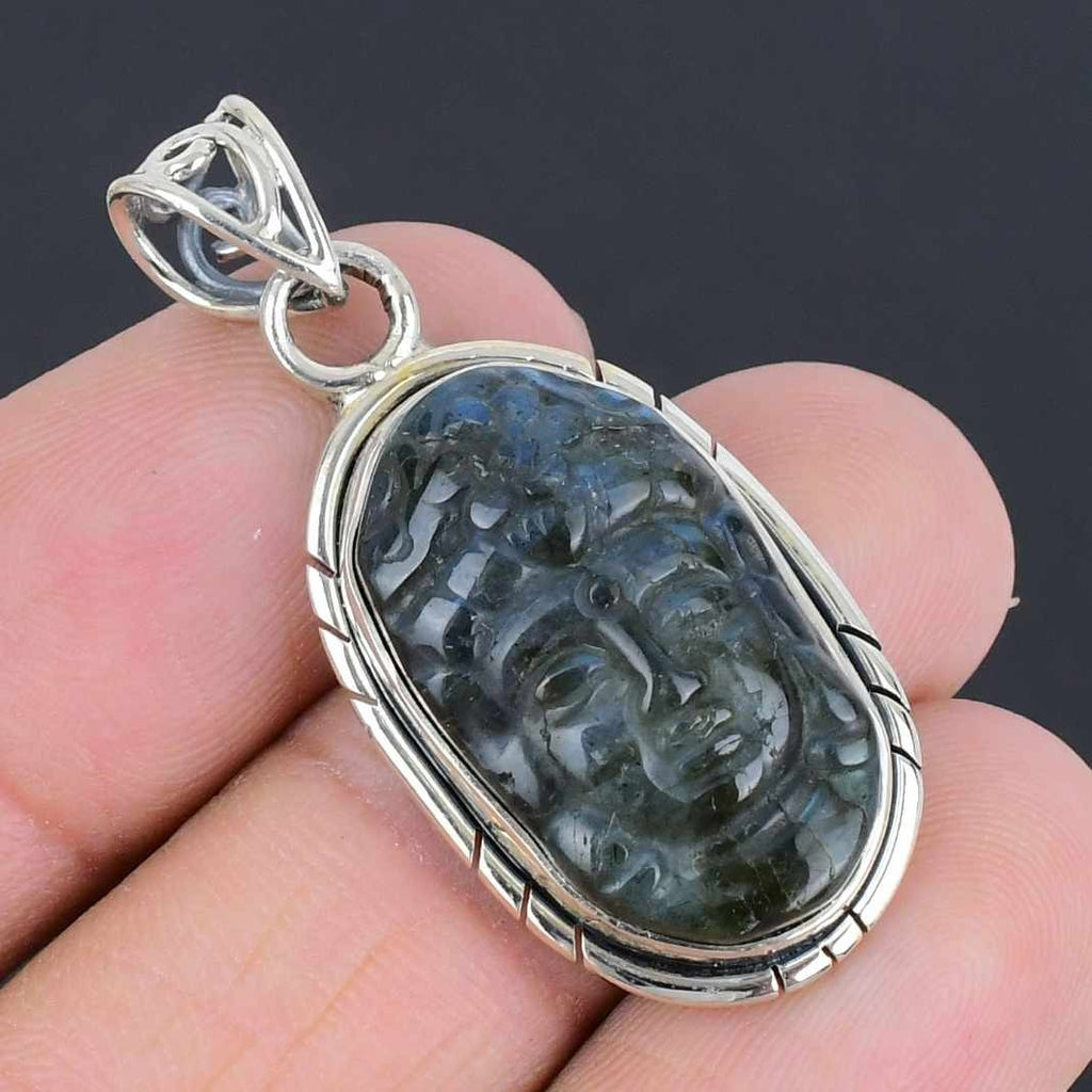 Labradorite Carving Gemstone Solid Silver Anniversary Sister Art Deco Pendant