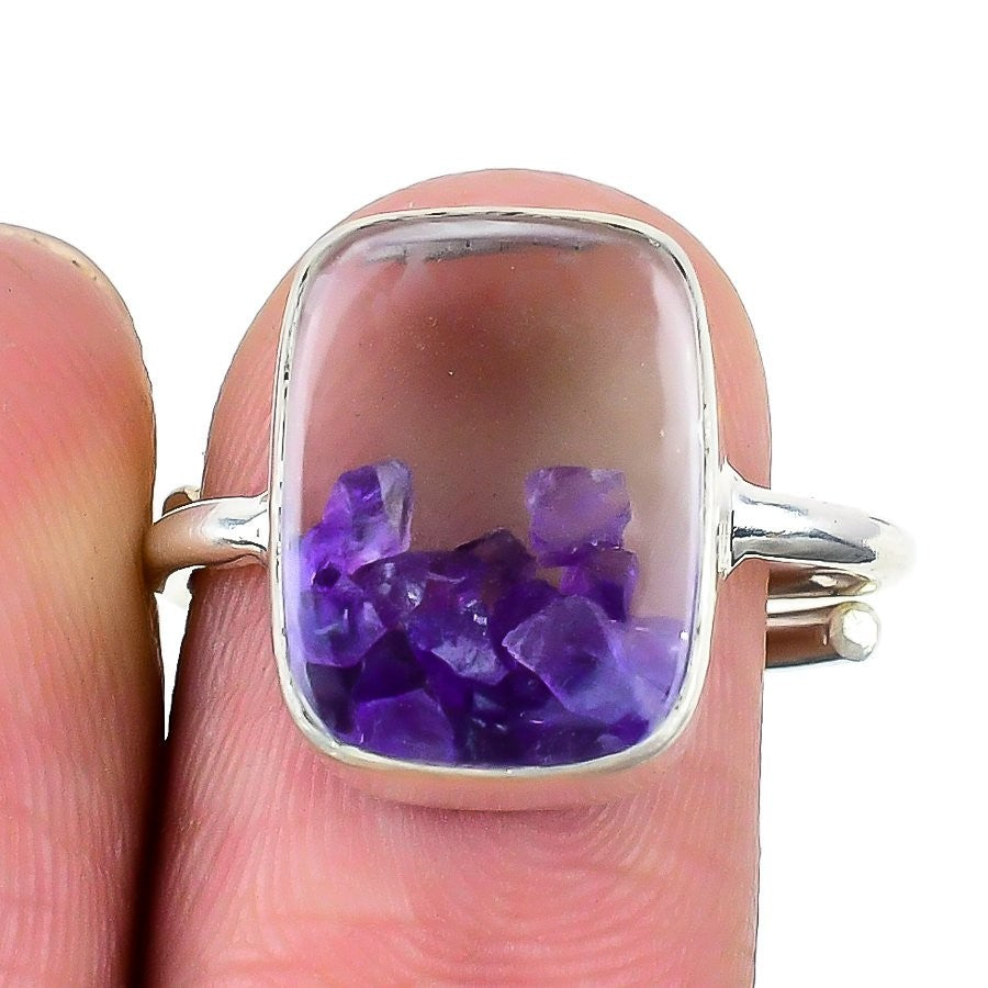Amethyst Gemstone Cluster Daughters Day Sister Ring Jewelry Size 7 Solid Silver