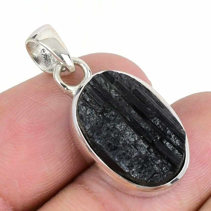 Black Tourmaline Stone 925 Sterling Silver Boho Sister Wedding New Pendant