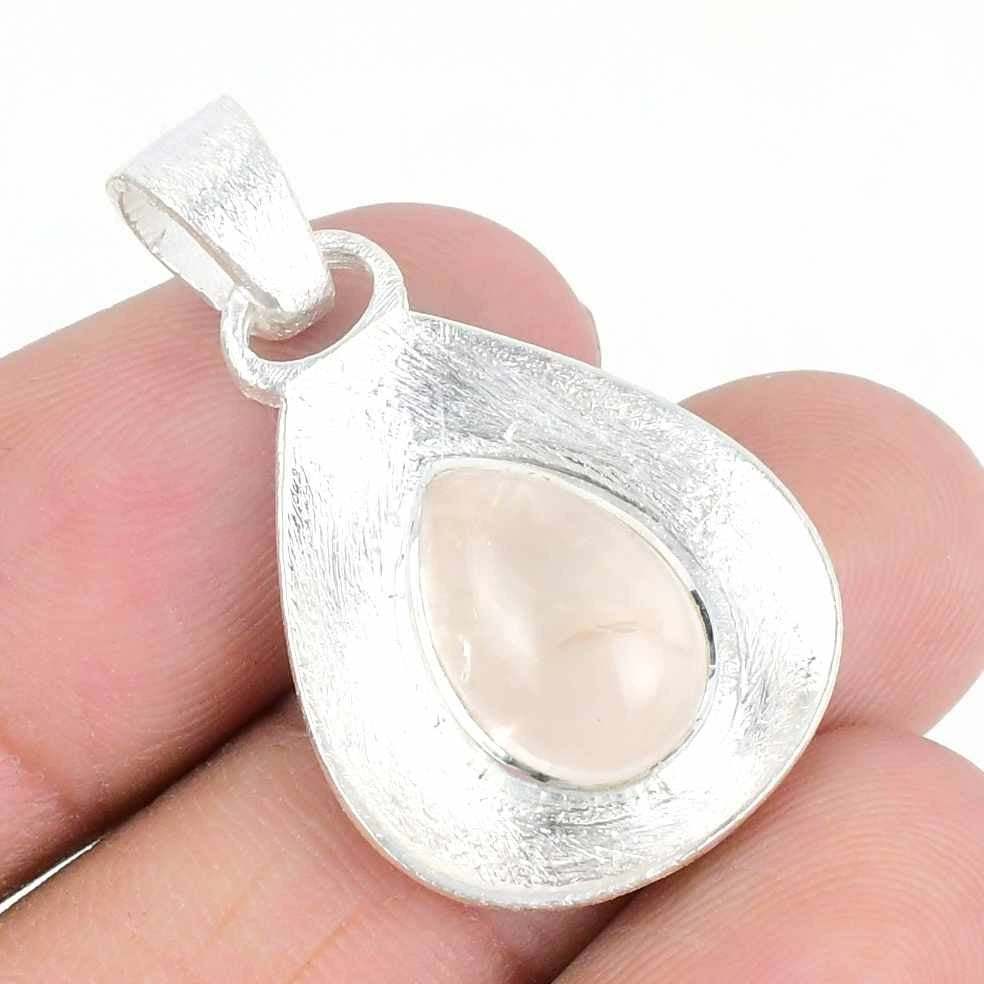 Natural Rosequartz Druzy Daughter Handcrafted Wedding Unique Pendant 925 Silver